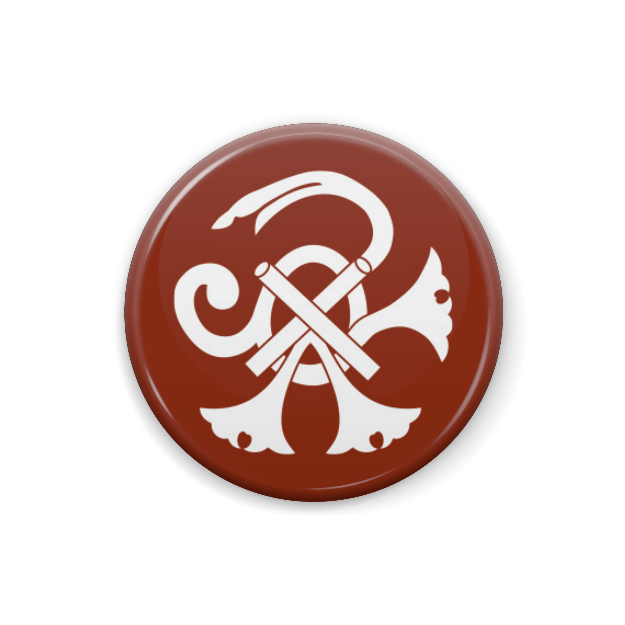 戦国武将家紋【中結び祇園守】のコインサイズの缶バッチです。